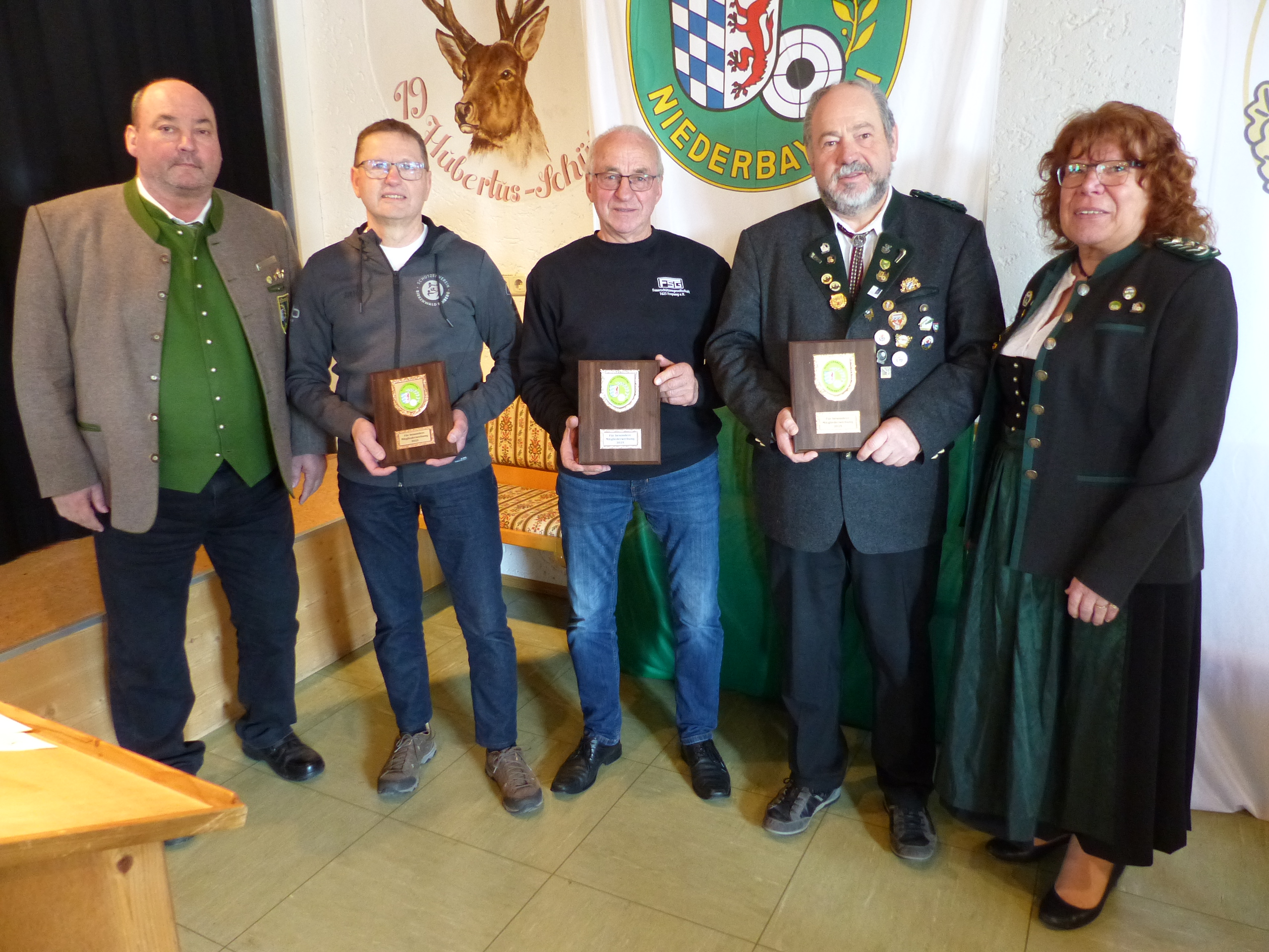 Traditionell zeichnet der jeweilig anwesende Vertreter des Schützenbezirks Niederbayern die drei Vereine im Gau aus, die mit den höchsten Zuwachsraten an Mitgliedern aufwarten können. Heuer waren dies Hubertus Böhmzwiesel (+ 37), FSG Freyung (+ 20) und Birkenwald Rehberg (+ 9).